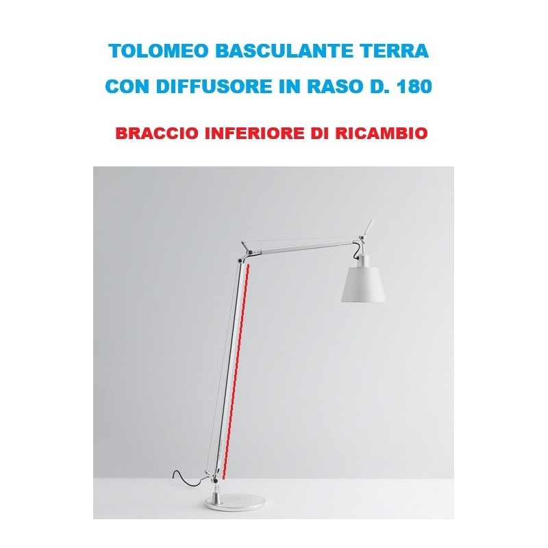 Artemide ricambio originale per Tolomeo basculante terra, braccio inferiore lungo in alluminio cromato brillantato, completo di molla e cavo di acciaio. Siamo rivenditori Artemide dal 2000 e dal 2006, siamo Artemide Center. Da noi puoi ordinare anche i ricambi delle migliori marche dell'illuminazione. Ricambi originali per lampade Artemide, Cini & Nils, FontanaArte, Egoluce e tante altre. Per maggiori informazioni ti puoi interfacciare con il nostro ufficio tecnico, dove avrai a disposizione un tecnico che da oltre 10 anni gestisce i ricambi. Siamo rivenditori Artemide dal 2000 e dal 2006, siamo Artemide Center. Da noi puoi ordinare anche i ricambi delle migliori marche dell'illuminazione.