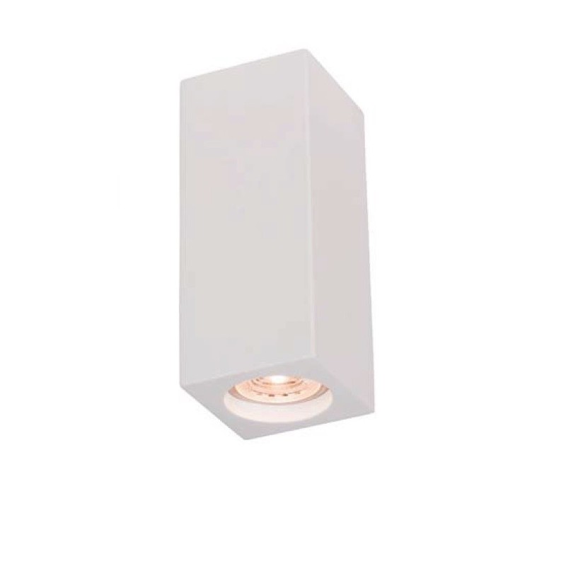 Faretto in gesso a soffitto. Parallelepipedo, dimensioni 7X7 cm, altezza 17 cm, colore gesso naturale. Può montare lampade LED, forma MR16 , attacco GU10, con alimentazione diretta 230Vac. Dopo una lunga selezione, oggi proponiamo una serie di faretti in gesso, da soffitto, da incasso e da parete. Faretto in gesso di importazione con un rapporto qualità/prezzo molto interessante. Di altà qualità anche le materie prime utilizzate, come il gesso e la ceramica, ottima la percentuale di ceramica utilizzata come legante al gesso, questo garantisce stabilità e durata nel tempo. Diffidate dai prezzi troppo bassi, che sono sinonimo di bassissima qualità della materia prima utilizzata e mancato utilizzo della ceramica come legante.