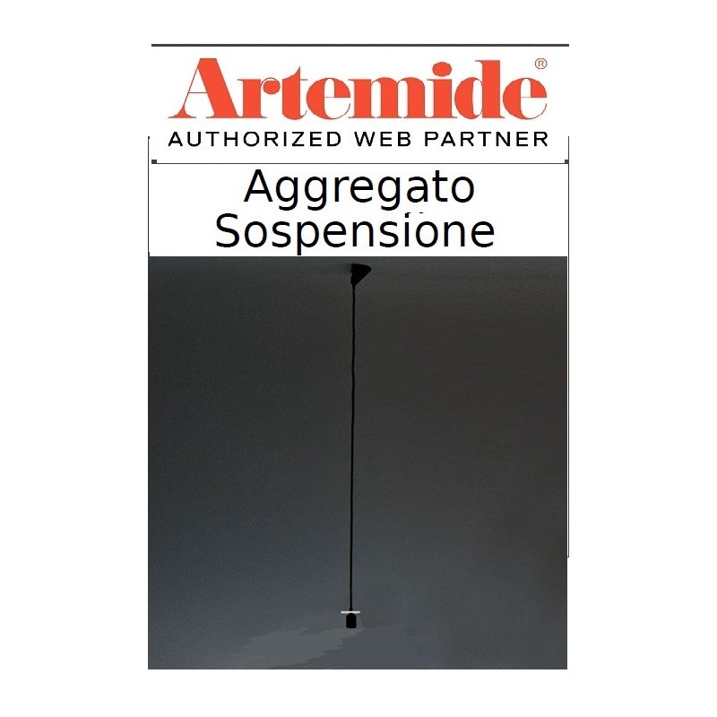 Artemide struttura per Aggregato sospensione, composto da rosone, coprirosone in PVC testa di moro, cavo di colore nero e portalampada con attacco a vite E27. Da completare con i diffusori sferici o conici.