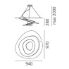 Artemide pirce lampada a sospensione ( lampadario ). Un unica sottile lastra di alluminio di colore bianco, tagliata al laser e modellata. Diametro 97 cm.Sorgente luminosa a led, potenza 44W flusso luminoso 3313 Lumen. temperatura di colore 3000° Kelvin ( come lampada alogena ).