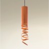 Artemide Decomposè light lampada a sospensione, struttura in alluminio di colore arancione. Monta N° 2 lampade con attacco E27, a risparmio energetico massimo 8W, oppure a led massimo 6W, una dalla parte del tubo integro e l'altra dalla parte del tubo tagliato per una doppia emissione verso l'alto e verso il basso.