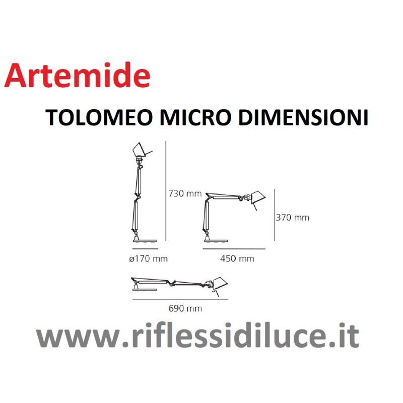 Lampada da tavolo, base e struttura a bracci mobili in alluminio di colore bianco lucido; diffusore in alluminio di colore bianco lucido; snodi e supporti in alluminio brillantato. Completa di base di colore bianco lucido. Sistema di equilibratura a molle. Lampada alogena max 40W, attacco E14, cavo, spina e interruttore volante di colore nero.Una delle lampade che fanno la storia di Artemide, il suo sistema di leveraggio a molla brevettato le sue forme create dai disegner Michele De Lucchi , Giancarlo Fassina nel 1987, i vari riconoscimenti, 1989 Compasso d’Oro / A.D.I. Milano (Italia) _ 1987 SNAI Oscar des Architectes d’Intérieur Paris (France) _ 1987 Haus Industrieform Deutschland, ne fanno un oggetto di culto, oltre che un apparecchio di illuminazione. Tolomeo è anche una famiglia che raccoglie lampade da tavolo, da terra, a sospensione e da parete. Tolomeo la troviamo in varie configurazione, colori e grandezze. Naturalmente, troviamo anche le versioni led, con prestazioni di flusso, tonalità di luce e resa cromatica che non hanno nulla da invidiare alle lampade alogene.