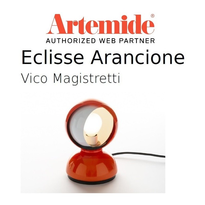 Artemide eclisse di colore arancione, lampada da tavolo. Struttura in metallo verniciato. Lampadina con attacco a vite E14 LED. Cavo, interruttore ON/OFF e spina di colore nero
