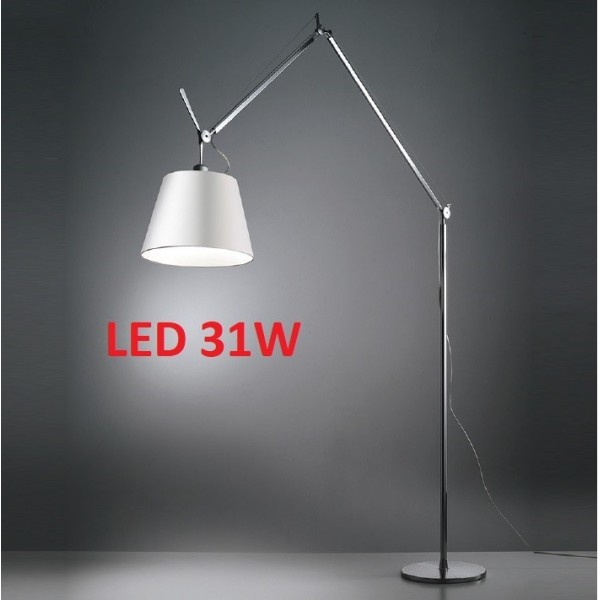 Artemide ilio lampada da terra, piantana, sorgente luminosa led 45W, tonalità di luce 3000° Kelvin ( come lampada alogena ), flusso luminoso 3564 Lumen, indice di resa cromatica 90. Materiale acciaio e alluminio, colore rosso rubino. Emissione della luce indiretta, interruttore e regolatore di luce. Dotata di APP Artemide gestibile a mezzo smartphone.