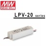 Mean Well alimentatore professionale per led. Alimentatore stabilizzato in tensione costante, ingresso 230Vac ed una uscita 24Vdc. Potenza 20W max, corrente 0.87A. In custodia DI pvc con grado di protezione IP20, per interni, esterni e intemperie. Dimensioni lunghezza 11.8 cm, larghezza cm 3.5, altezza 2.6 cm.