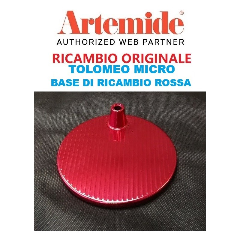Artemide, base di ricambio per Tolomeo micro tavolo di colore rosso anodizzato. Materiale alluminio diametro 17 cm. Siamo rivenditori Artemide dal 2000 e dal 2006, siamo Artemide Center. Da noi puoi ordinare anche pezzi di ricambi delle migliori marche dell'illuminazione. Ricambi originali per lampade Artemide, de Majo, Cini & Nils, Fontana Arte, Panzeri, Egoluce e tante altre. Per maggiori informazioni ti puoi interfacciare con il nostro ufficio tecnico, dove avrai a disposizione un tecnico che da oltre 10 anni smonta e ripara le lampade di tutti i marchi.