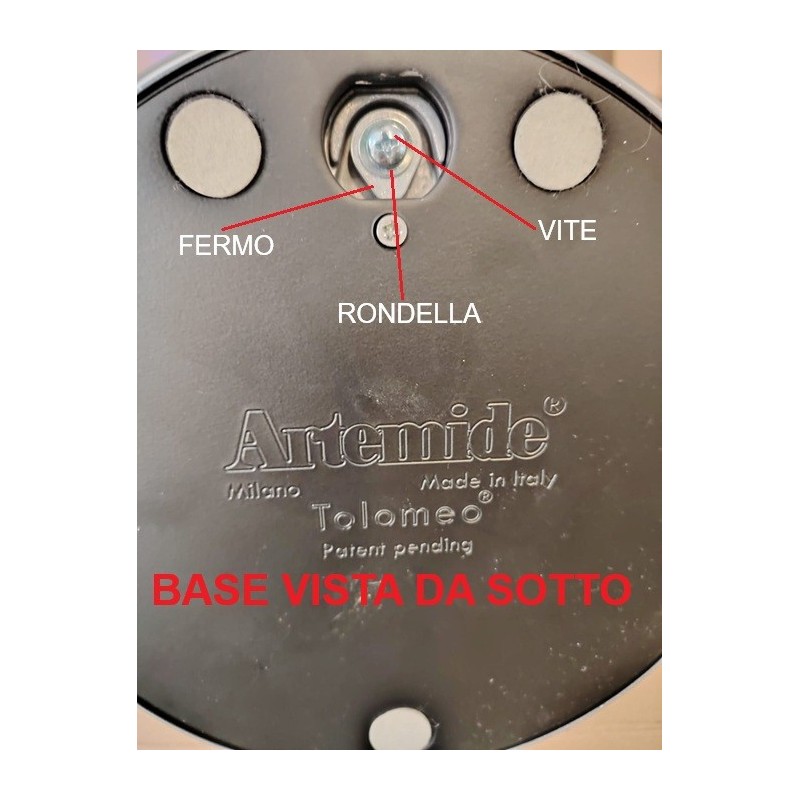Artemide ricambio originale, per lampada Tolomeo standard da tavolo, vite con rondella e fermo, serve per fissare la leva primo snodo alla base.